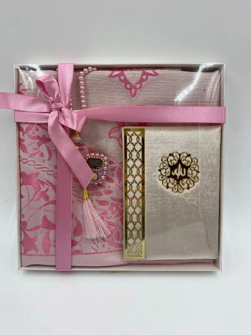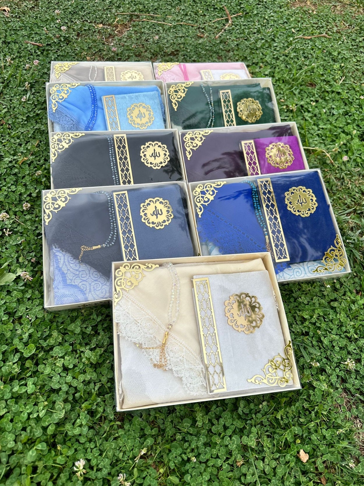 SET İÇERİĞİ :Pamuk seccade, dantelli eşarp, kırıstal tespih, Yasin Kitabı.. 1.kalite ürünlerden imal edilmiştir